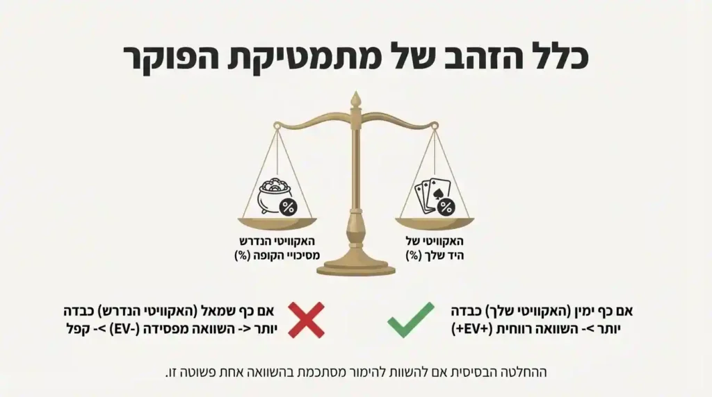 כלל הזהב של מתמטיקת פוקר: אקוויטי לעומת סיכויי קופה
